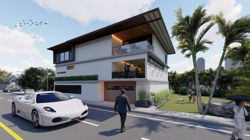 CONCEPT: The Ground Floor houses the servants' quarter and 4 Car parking. The first floor is the client's house.