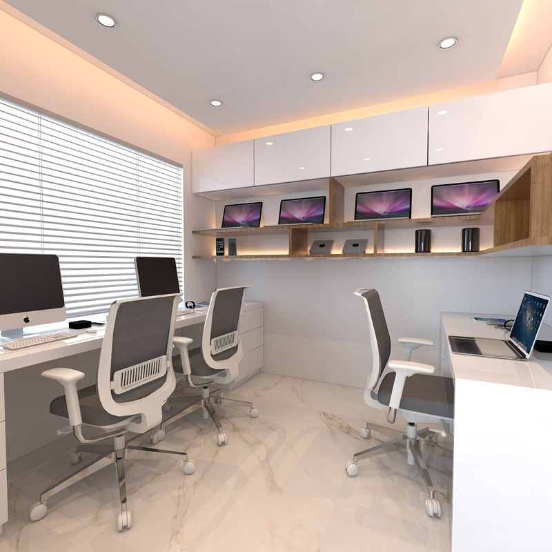 CONCEPT: Service center located in the same building as the experience center in Surat providing services to Apple Tech users. Completed being redesigned and refurbished to a more elegant and ambient look with relaxing white spaces. The interiors are exemplified with minimalism with a rich balance of creative lighting and texture. For any visitor this will provide more exploration to Apple Tech along service.