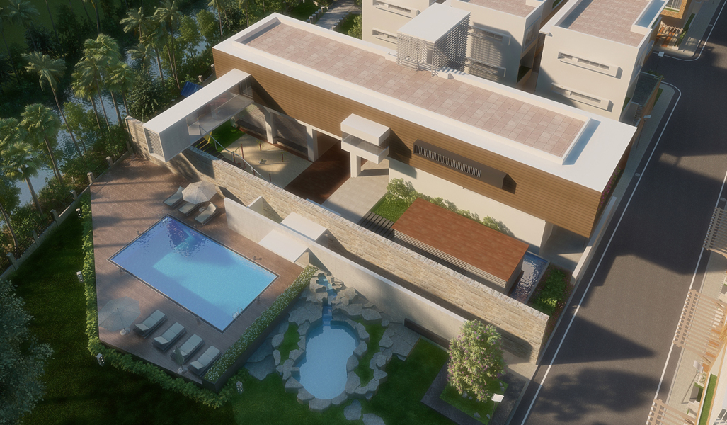 A convention centre is designed to be laced at the back, towards the swimming pool.
